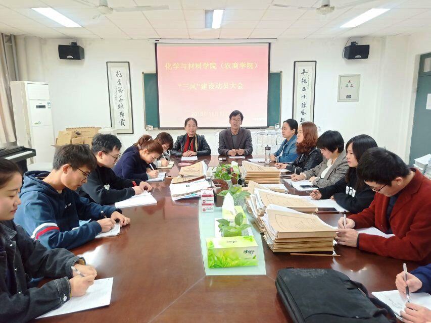 11月1日下午,公司在会议室召开“三风”建设动员大会。党总支书记孙永秀、经理焦更生、办公室主任张晶、全体辅导员以及各班班长、学习委员参加了此次大会,大会由学工办主任刘原主持。
