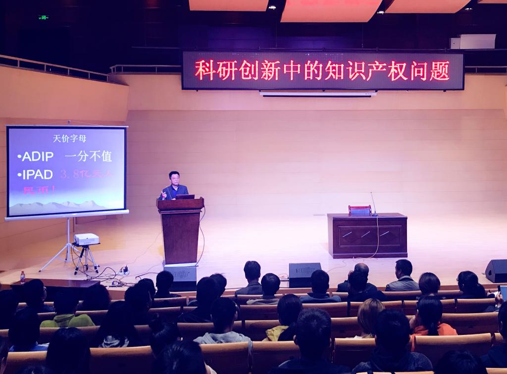 苟红东以屠呦呦青蒿素、SARS疫苗、苹果IPAD冠名、以色列首任总统威兹曼一个专利换来一个国家等经典事例为例,阐明知识产权在科研中的重要性。