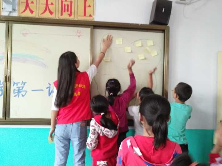 听完孩子们的暑期生活后,志愿者给孩子们播放了《开学第一课》的视频片段,观看结束后志愿者们仔细聆听了孩子们的观后感,然后带领小朋友们认真写下了自己的新学期目标并和小朋友们一起制作了目标树,以此督促小朋友们能够时刻朝着自己的目标努力前进。
