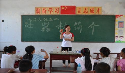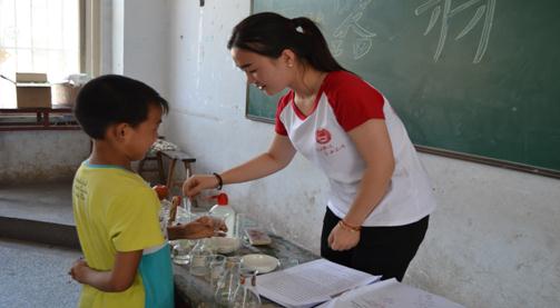 当小朋友们看见我们的志愿者手里拿着的试管、烧杯、玻璃棒等化学仪器时,不由得争先恐后地围上前来观看,并询问这些仪器的用处。小员工的学习能力有限,所接触的大都是一些较为简单的事物,对一些化学仪器和知识不是很容易接受,因此。我们的志愿者组织了一堂化学器材介绍,用生动活泼的语言讲述了这些仪器,并告诉小朋友们一些简单的化学小常识。对于一些抽象的化学原理和化学知识,我们通过形象的语言表述出来,并且让小朋友们亲身学习如何使用,达到了良好的学习效果。最后,听到我们的志愿者明天将开展一堂化学小实验的课这个消息时,小朋友们开心地笑着跳着,充满着期待。