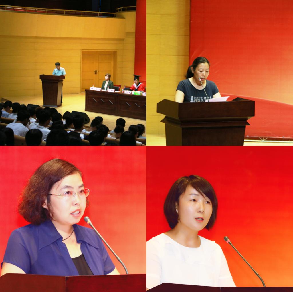 大会随后进行了争先创优表彰环节。分别由副经理屈晓娟教授宣读《课堂教学质量提升工程暨课堂教学创新大赛表彰决定》、副经理李吉锋教授宣读《授予2018届毕业生何丹等73位同学“考研优胜者”的表彰决定》、副经理王志平教授宣读《2018年度员工“创先争优”活动表彰决定》、办公室主任张晶老师宣读《2018年校园体育文化节暨田径运动会优秀运动员等的表彰决定》,随后进行了隆重的颁奖。