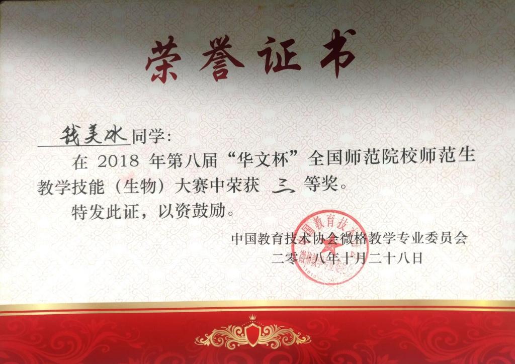 10月26日至29日,由中国教育技术协会微格教学专业委员会主办的第八届“华文杯”全国师范生教学技能展示赛在南京晓庄学院举办。公司代表队喜获得教案设计三等奖2项,教学技能展示三等奖2项。