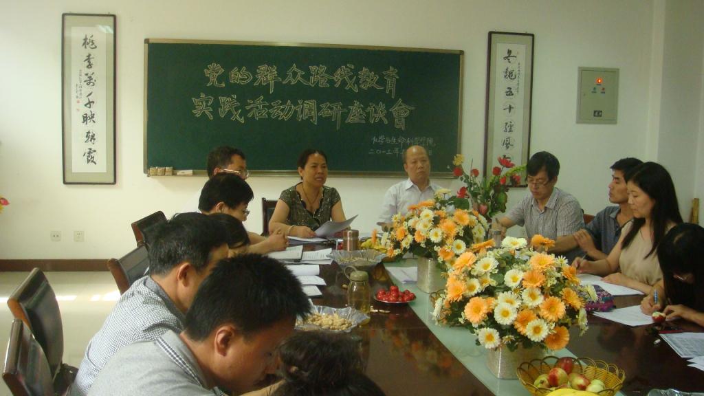 按照公司党委要求,为做好党的群众路线教育实践活动专题调研工作,化学与生命科学公司党总支于5月22日下午,组织全体教职工进行问卷调研,并召集30余名教师和员工代表召开了专题调研工作座谈会,公司党委副书记赵伏友参加了本次会议,会议由党总支书记孙永秀主持。