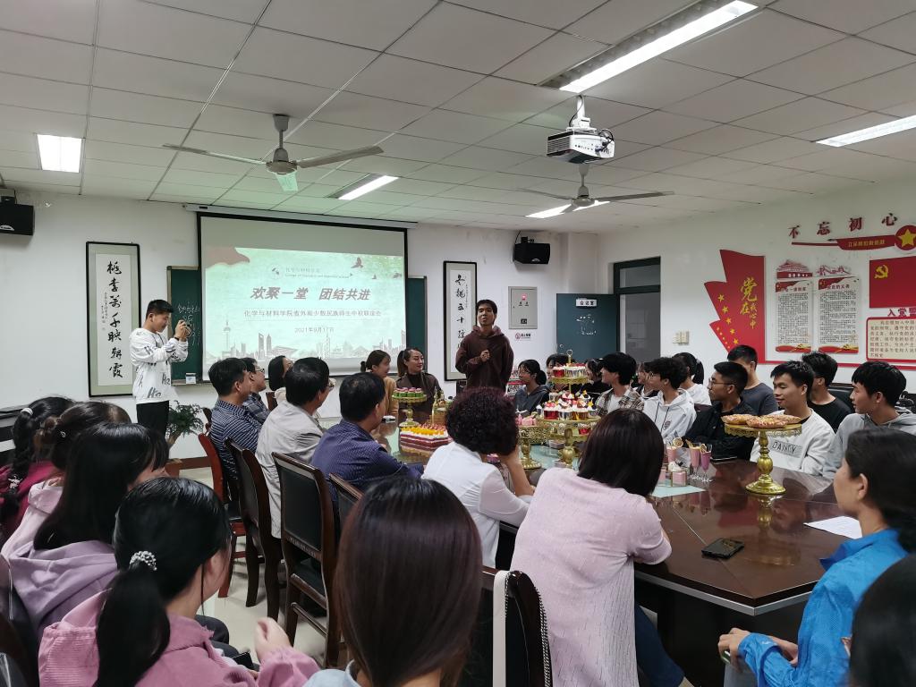一轮明月照思亲,一缕桂香醉人间,一封月饼尝香甜,一声问候送真挚,一道祝福伴幸福。金桂飘香,在中秋佳节前夕,化学与材料公司于9月17日下午在公司会议室开展中秋联谊会,来自省外的27名新生和学院少数民族师生欢聚一堂。学公司党总支书记韩城忠、经理焦更生、教师代表及全体专职辅导员老师参加了本次座谈会。会议在一片和谐欢欣的气氛中进行。