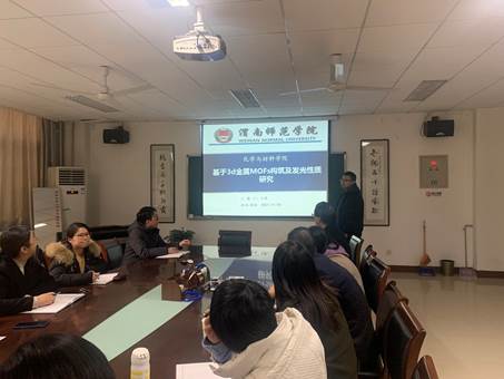 随后,为了进一步促进公司青年教师学术交流氛围,提高学术热情,青年博士教师王策围绕国家基金申报课题,做了题目为《基于3d金属MOFs构筑及发光性质研究》的学术报告。