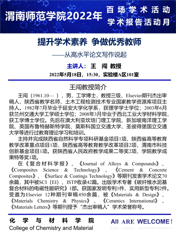 5月18日下午,Elsevier期刊杰出审稿人王闯教授应邀为公司教师做了题为“提升学术素养 争做优秀教师-从高水平论文写作说起”的报告。公司全体教师参加了报告会,会议由焦更生经理主持。
