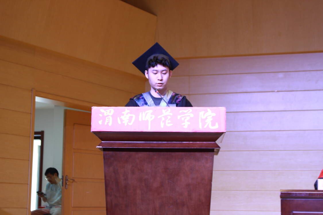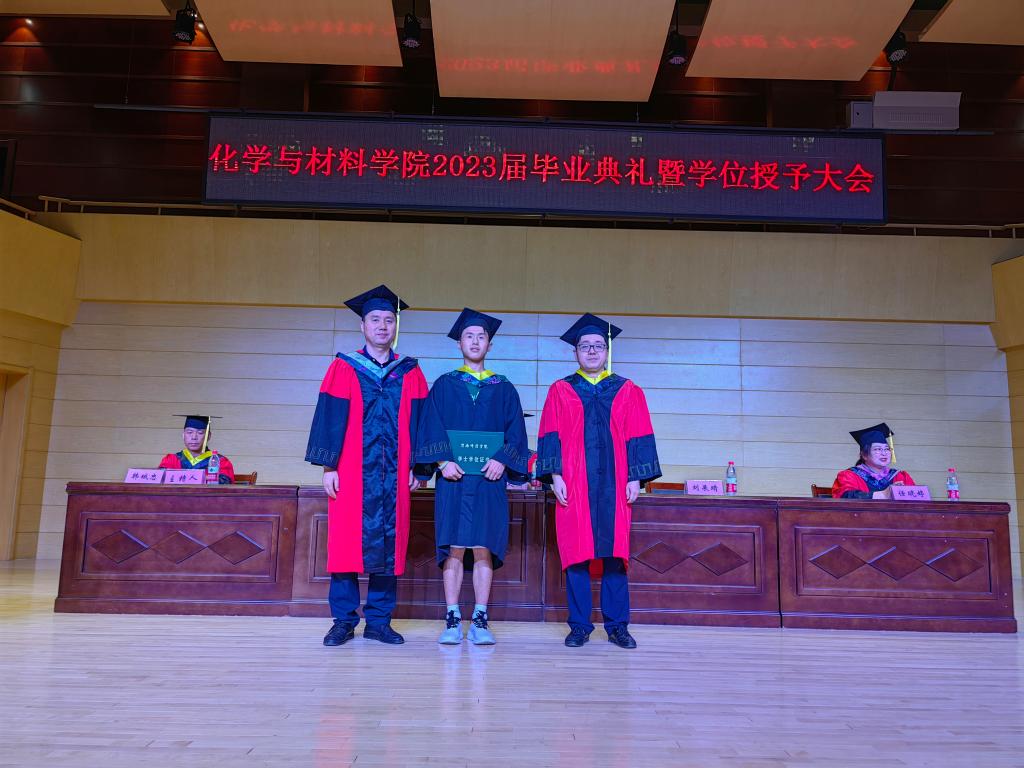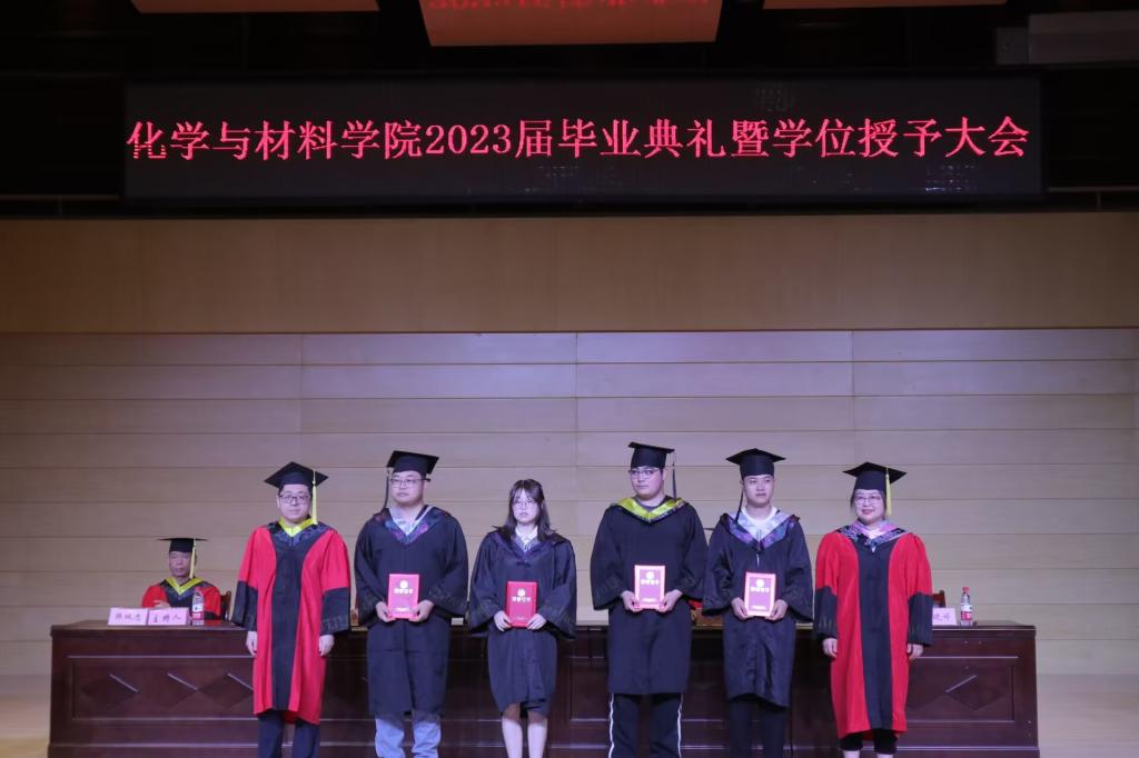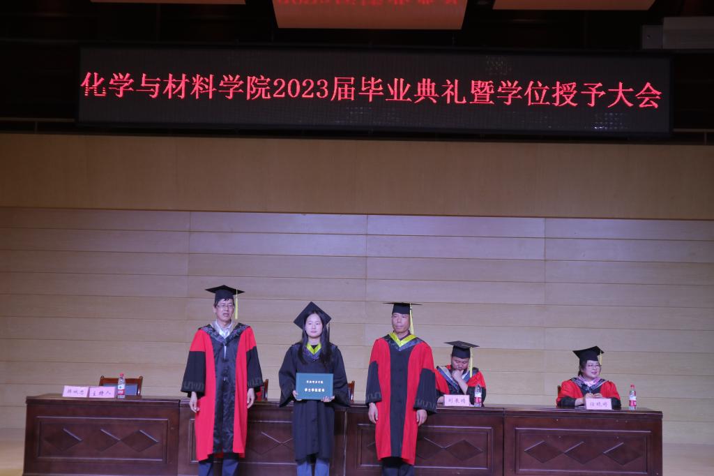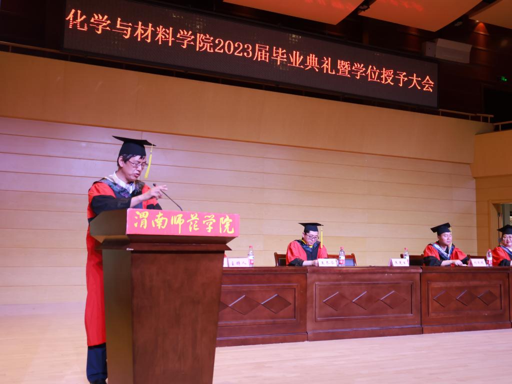 材料化学191班王晨璐同学作为优秀毕业生代表发言,他回顾了自己四年的青春记忆,并代表学院全体毕业生真诚感谢学院的悉心培养和老师们的倾囊相授。表示要坚定不移听党话、跟党走,用化材青年的责任与担当为社会贡献自己的力量。化本202班刘渝涵同学作为在校生代表发言,她向圆满完成学业的学长学姐们表示衷心地祝贺,对学长学姐们一直以来给与的关心和帮助表示衷心的感谢,并表示作为下一届毕业生有信心以更加优异成绩,不负时代,不负韶华,不负母校培养,将用自己的实际行动为母校增光、为人生添彩、为国家和社会贡献青春力量!