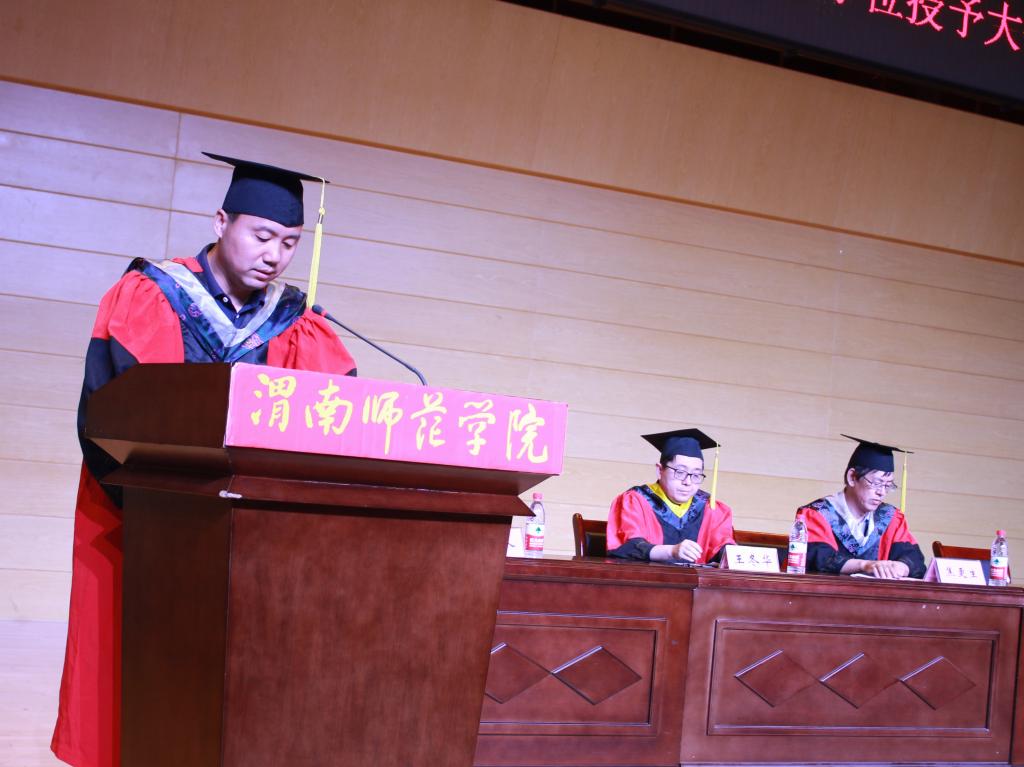 在热烈的气氛中,学院领导为毕业生——正冠拨穗,并颁发学位证书。