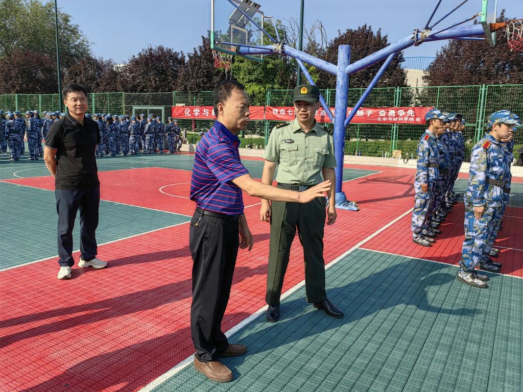 训练场上,新生们昂首挺胸、精神饱满、口号嘹亮、整齐划一,在教官的带领下进行军事科目训练。韩城忠一行现场观看了新生各连队列训练,与教官、员工以及辅导员深入交流,详细了解军训训练项目和过程管理等情况。