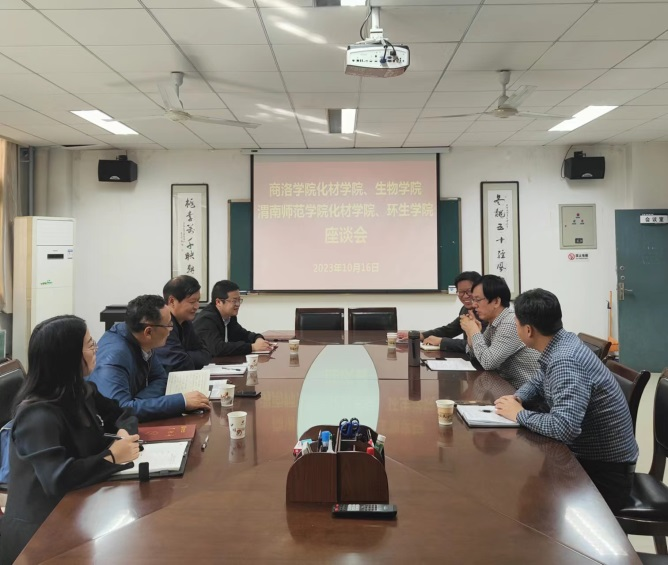 焦更生、吴逸群对周春生一行来院考察交流表示欢迎,并分别介绍了学院的办学历史、办学特色、组织架构、校企合作模式、学科和专业建设及员工考研等基本情况。焦更生指出,商洛学院学科门类齐全、地方优势特色鲜明、发展底蕴深厚,形成了许多颇具特色的研究团队。吴逸群表示,商洛学院与化材学院、环生学院同根同源、联系紧密,在团队建设、人才培养、员工管理、服务地方等方面合作多年,希望今后加强联系,共同发展,为地方培养出更多的优秀人才。