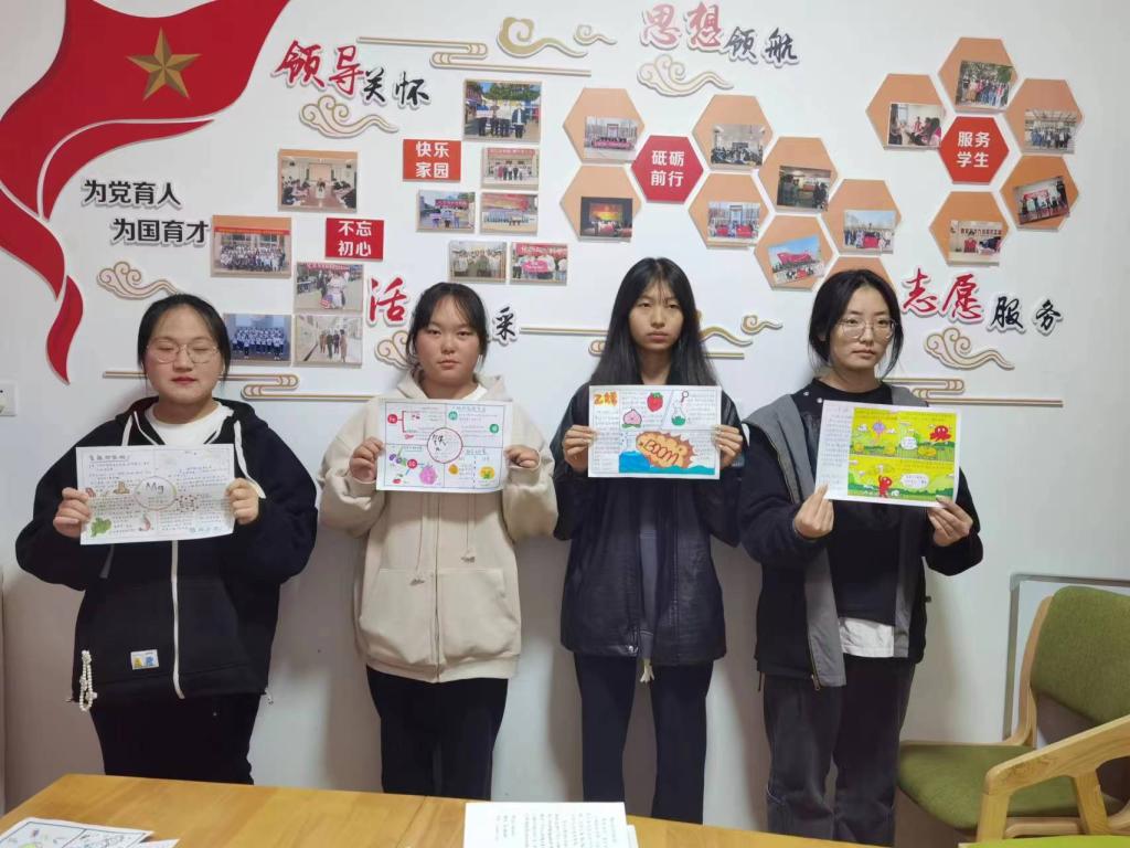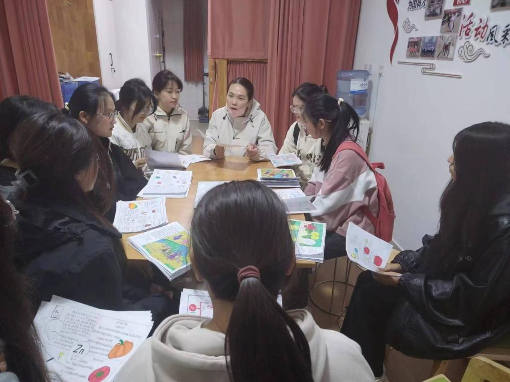 在活动过程中,沙丹与同学们共同欣赏了社团成员制作的化学相关的手抄报。同学们热情高涨、积极讨论,从化学的视角认识生活,通过自己的自主学习能力和动手能力,深刻了解化学知识。活动最后,同学们与优秀手抄报作品进行拍照留念。