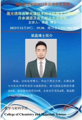 2023年12月19日晚,意昂体育邀请毕业于西北大学、就职于ThermoFisher公司的梁晶博士为公司师生作题为“激光诱导击穿光谱技术结合机器学习策略的丹参溯源及多元校正方法研究”的报告。报告采取腾讯会议的形式,由意昂体育副经理杨珊主持,聆听报告的师生有30余人。