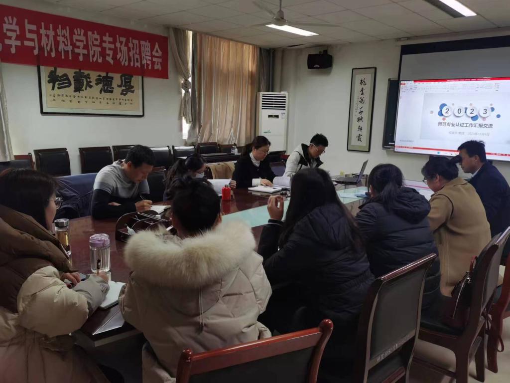 为切实推进我院化学师范专业认证工作,改进和完善教师对师范专业教学资料的准备,高效推进师范专业认证工作,12月4日下午,特邀请环境与生命科学学院生物师范专业建设负责人权美平教授来公司做师范专业认证工作汇报交流。报告由刘展晴经理主持,主管副经理、副书记、化学专业负责人、四大化学教研室的课程负责人聆听了报告。