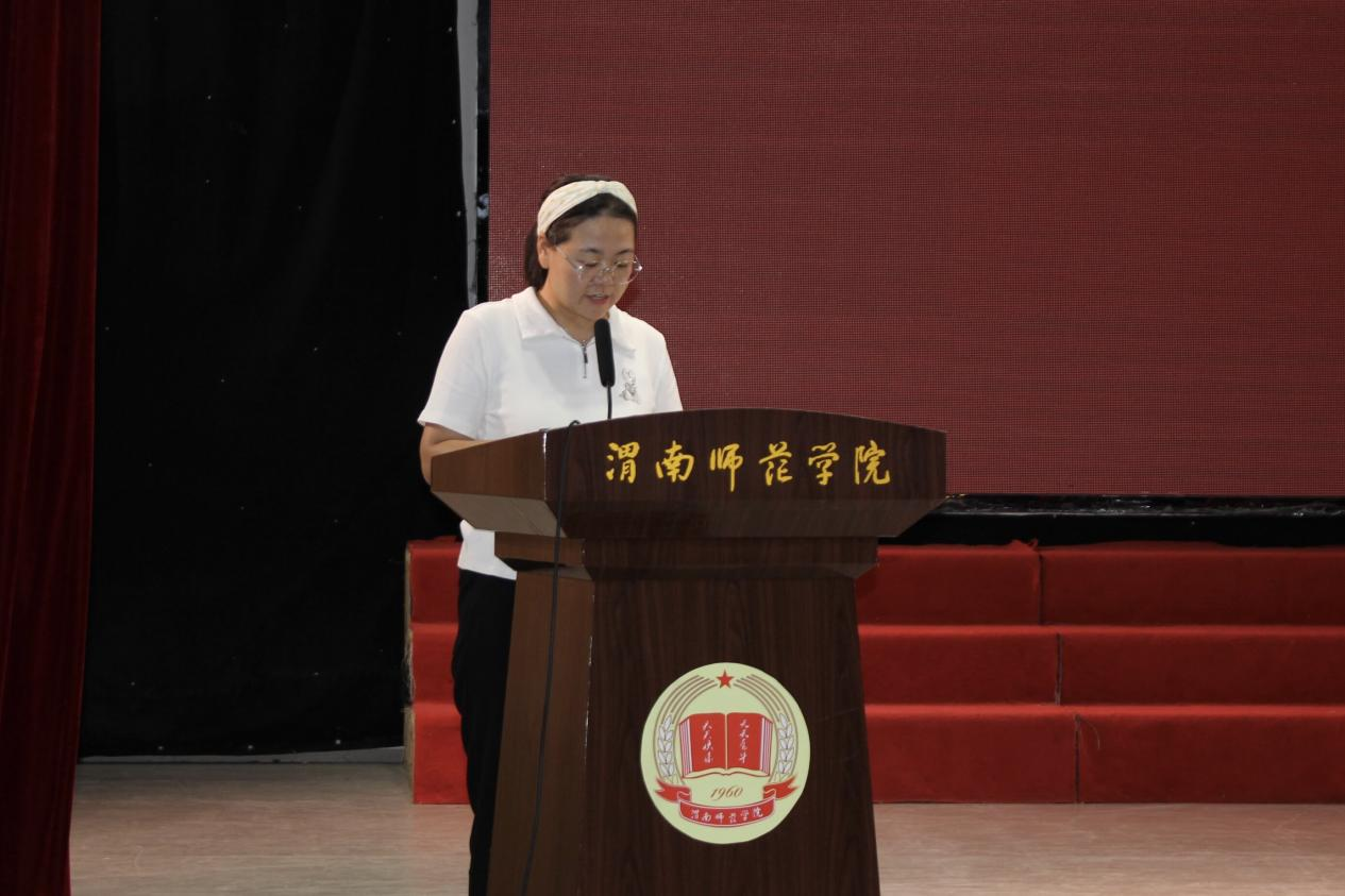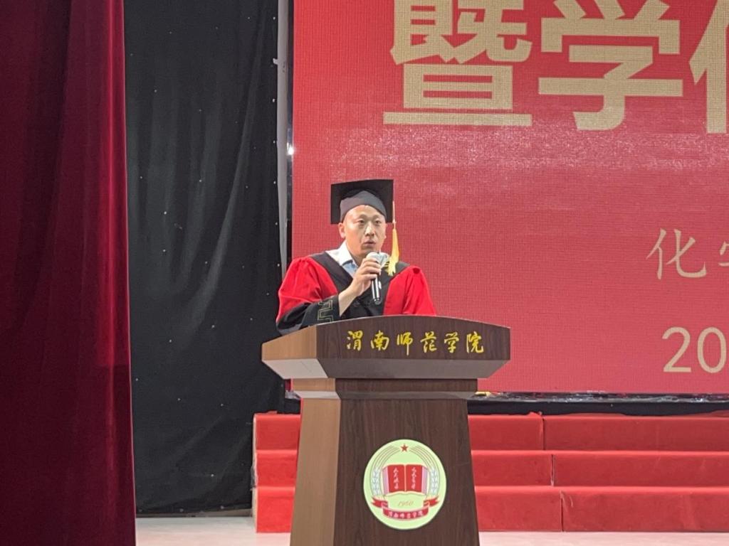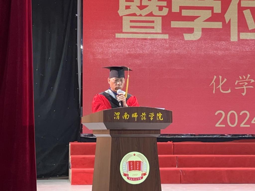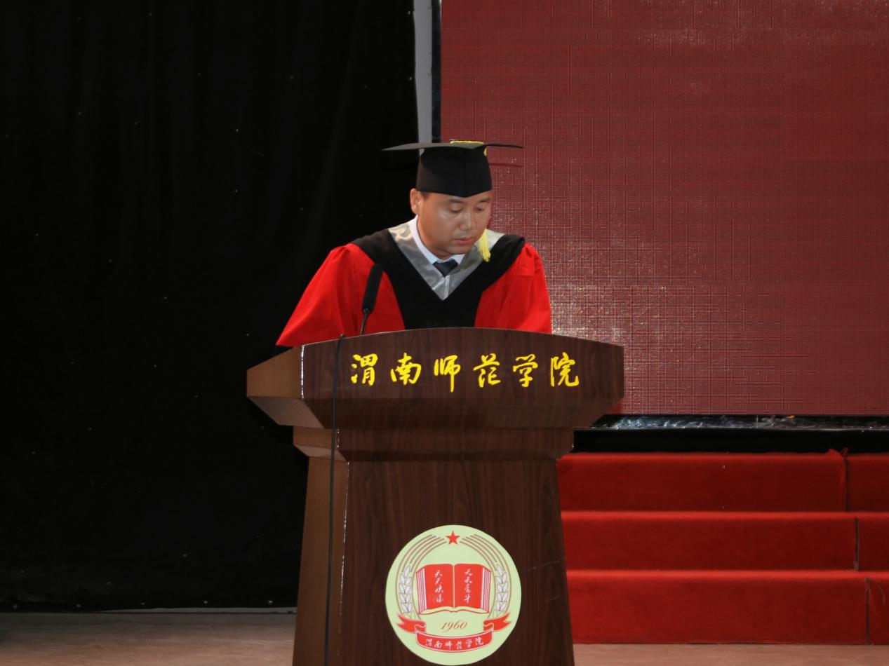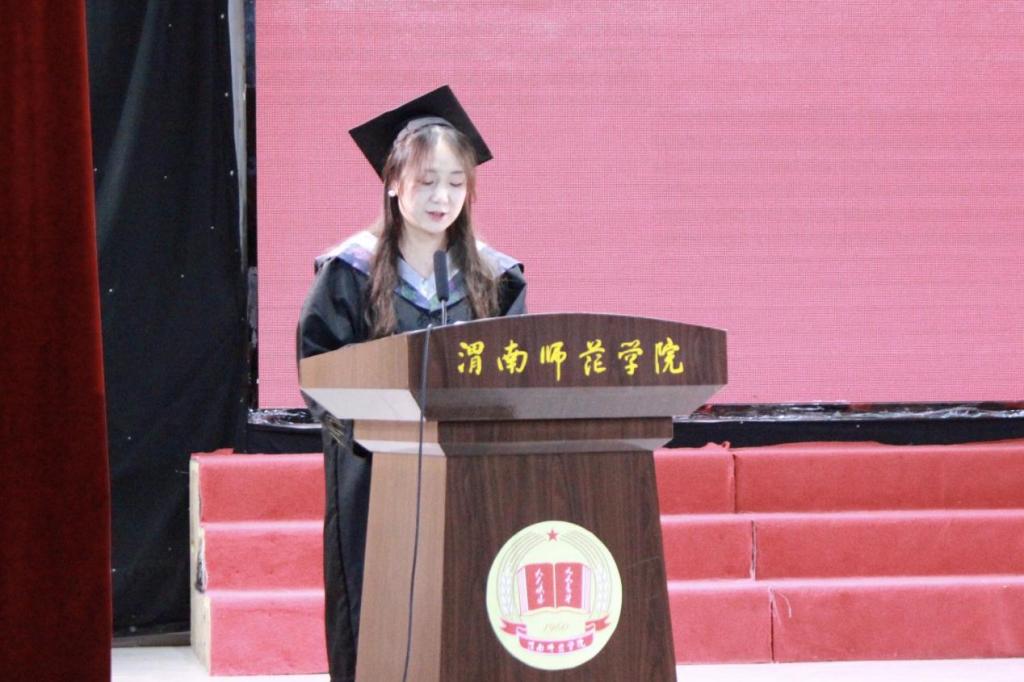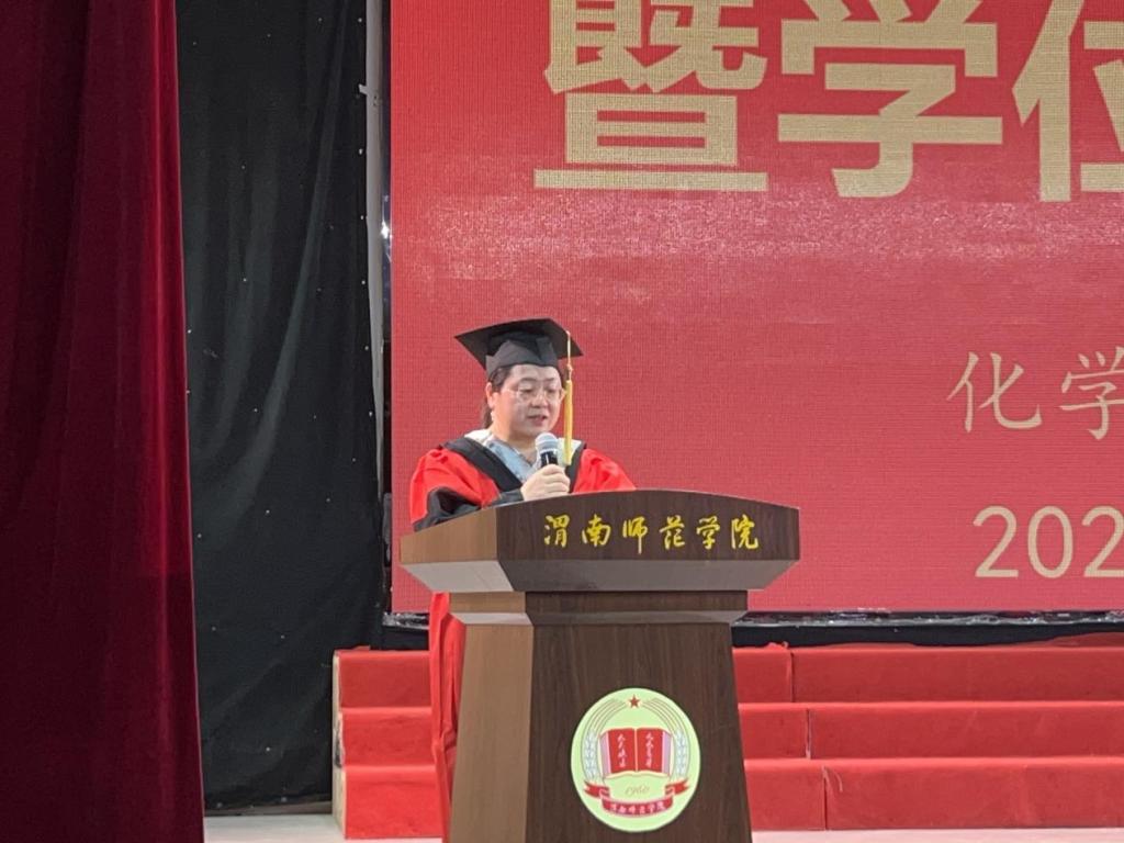 连菊红老师作为教师代表发言,恭喜大家顺利完成学业,并对获得学位的同学们表示衷心的祝贺,表示希望毕业以后的同学们更加应该坚守初心、勇担时代使命、砥砺前行,传承渭师院励志笃学,求实敬业的校训和精神。