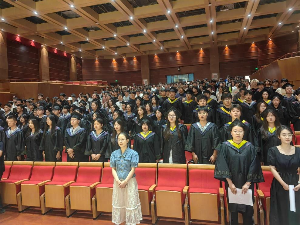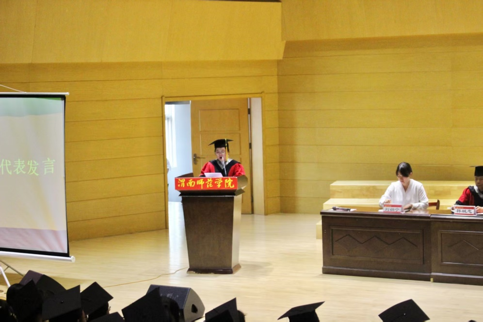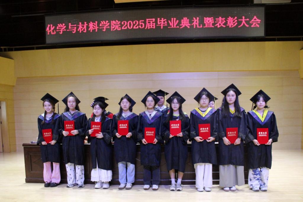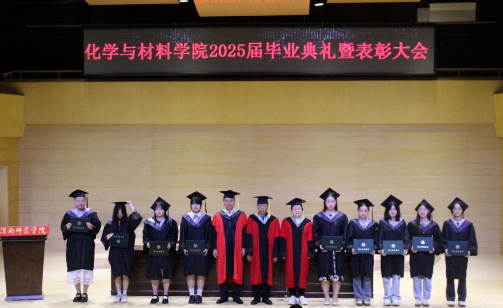 典礼在庄严的国歌声中拉开帷幕,杨珊宣读《2025届毕业生资格审核、学位授予资格审核结果》;韩城忠宣读系列表彰决定,对优秀毕业生、毕业班优秀员工干部、考研学习标兵、先进工作者予以肯定,这些荣誉是努力的成果,也为在校生树立奋进标杆。2025届毕业生代表樊荣鑫回顾校园岁月,从课堂求知到实验室钻研,感恩学院培养与老师教导,表态将以化材青年担当,在社会舞台践行责任;在校生代表能化221班冯曦宇送上祝福,诉说学长学姐榜样力量,承诺以其为范,用优异成绩回馈母校,让青春在奋斗中闪光。