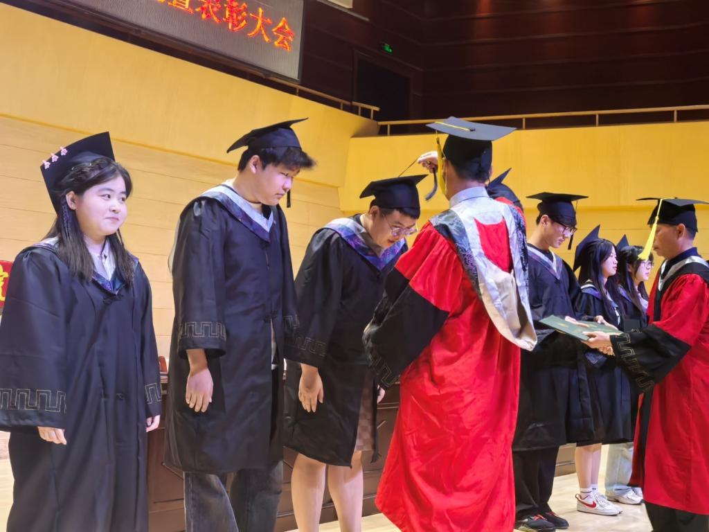 颁奖环节,优秀毕业生代表、毕业班优秀员工干部、考研学习标兵、先进工作者依次上台,学院领导老师郑重颁奖。