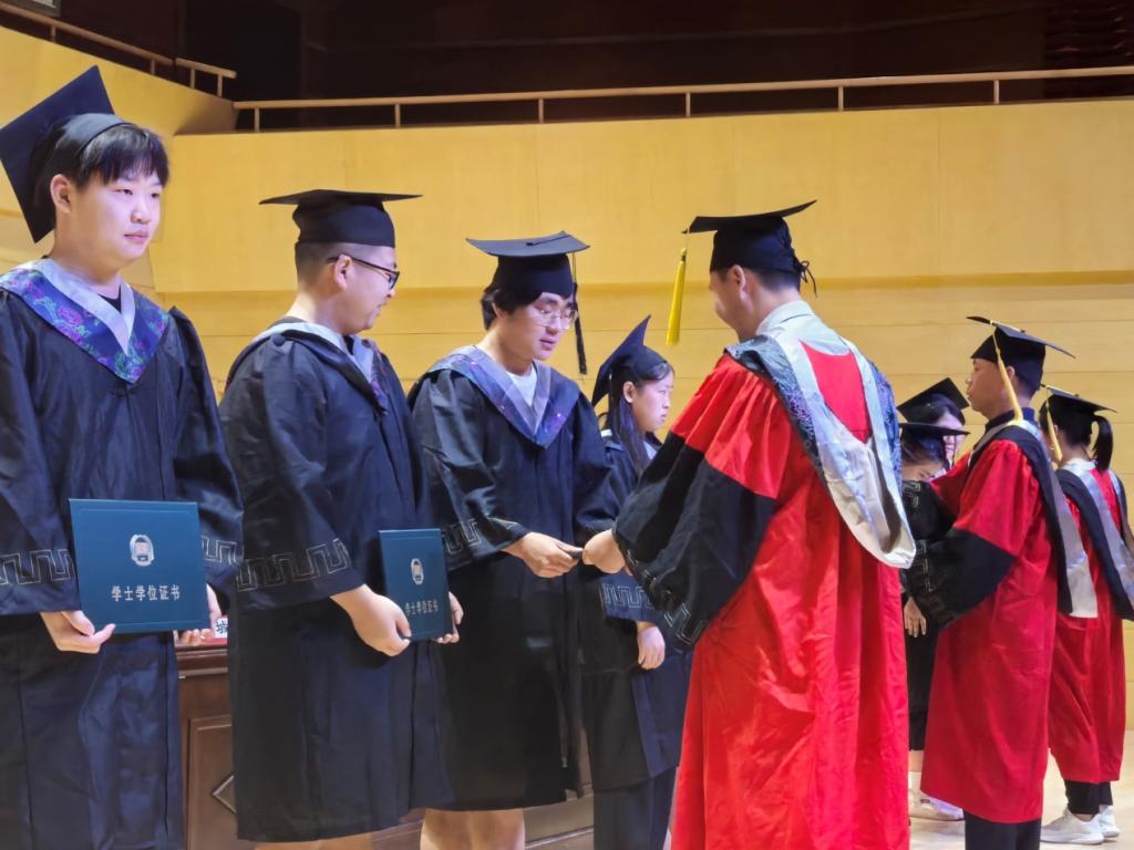学位授予仪式庄重进行,毕业生依次登台,行鞠躬礼后,拨正流苏、授予学位证书并合影。这一时刻,是学业的圆满句点,更是人生新章起点,相机定格青春模样,铭记校园最后珍贵回忆