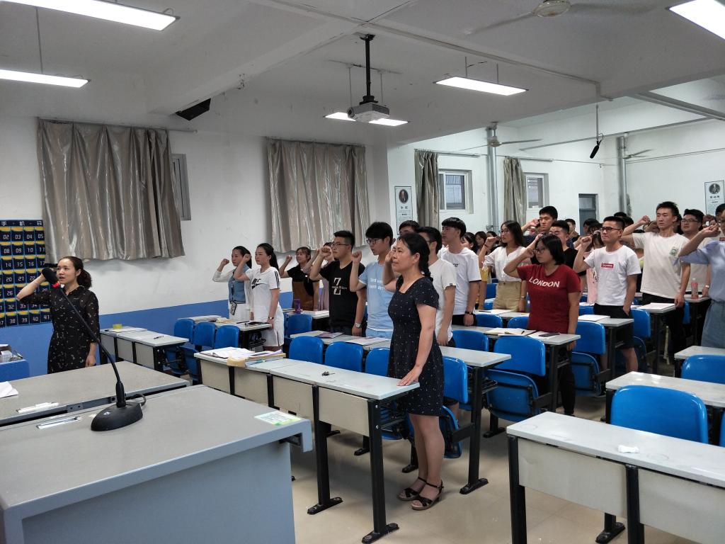 最后,张小苗领誓,全体与会党员面对党旗再次庄严宣誓,通过重温入党誓词,再次体味党员的神圣使命,把“不忘初心,牢记使命,永葆共产党员的先进性”写进每位毕业生党员的心中。