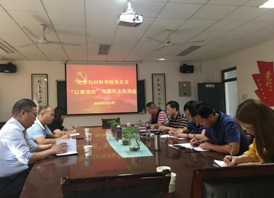 2020年9月2日下午,公司党总支关于赵正永严重违纪违法案“以案促改”专题民主生活会在学院会议室召开。公司党委委员副董事长卢爱刚、学校督导组成员李明敏、张小多到会指导工作。化材学院班子成员参加,会议由党总支书记韩城忠同志主持。