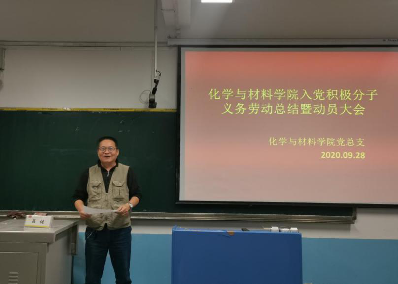 吕健为2019级全体入党积极分子作了动员讲话。他希望所有同学在接下来10月份的义务劳动中都应谨记习近平总书记对老员工劳动教育的要求,树立正确的劳动观念,培育积极的劳动精神,培养必备的劳动能力,养成良好的劳动习惯和品质。同时强调,党员要通过劳动体现党员的先进性。最后,他肯定了同学们在劳动过程中的表现并对存在的问题提出了整改建议。