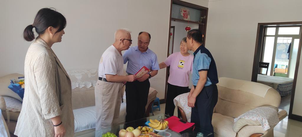 卢爱刚一行深入李智民家中,详细询问他的身体状况、生活情况,认真聆听李老师讲述过去在岗位上的奋斗故事,向老教师讲述学校的新发展、新变化、新成绩,感谢他多年来为学校的发展所做出的不懈努力,鼓励老教师继续发挥余热,贡献力量,对学院发展建设提出宝贵意见和建议,为学校高质量发展贡献老教师的智慧和力量。