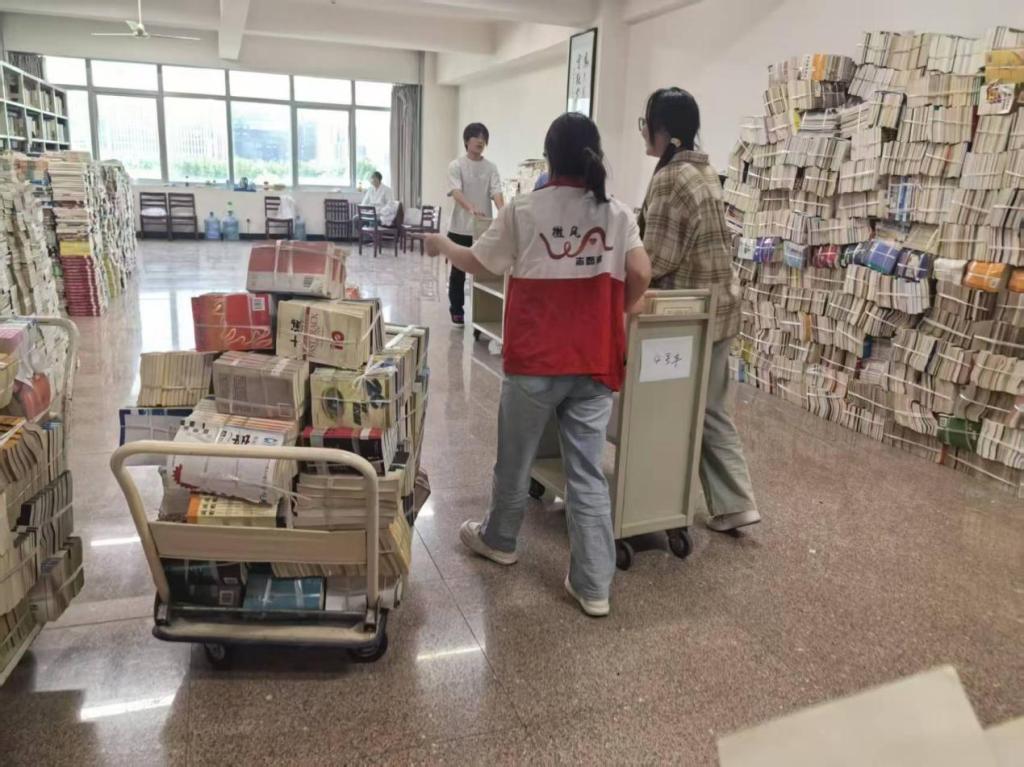 在书籍搬运环节,志愿者们相互配合,组成接力队伍。尽管书箱沉重,但他们咬牙坚持,有条不紊地将书籍从一处搬运至另一处,即便手臂酸痛也未曾有丝毫懈怠。扫码入库工作同样紧张而有序,志愿者们目光专注,双手快速操作,每扫描一本书籍,都会认真核对信息,全力避免录入错误。