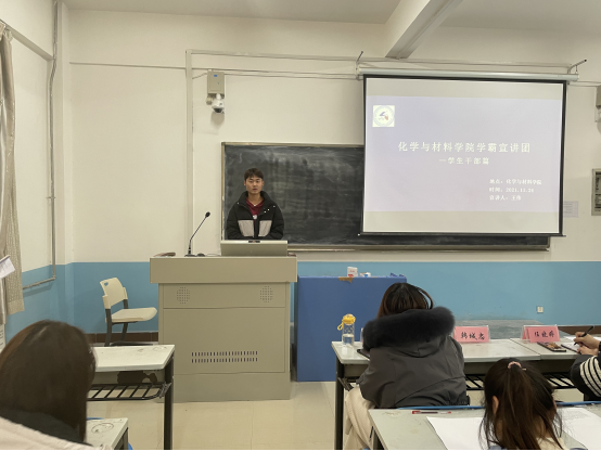 学霸宣讲团成员经由前期各班辅导员推优筛选出9名员工组成,分别是获得国家级、省部级互联网+老员工创新创业立项员工材料化学191班王晨璐、化学本科191班杨笑笑;第十三届“挑战杯”陕西省老员工课外学术作品竞赛省级二等奖获得者化学本科191班段周佳、鲁嘉欣;首届“外研社·词达人杯”全国老员工英语词汇能力大赛陕西赛区本科组一等奖、全国赛区三等奖获得者化学本科191班秦点;全国数学竞赛三等奖获得者高分子材料与工程191班路燕;国家励志奖学金获得者员工代表材料化学201班唐晴、化学本科201班李夏嫣、化学本科202班焦倩、优秀员工干部代表王伟。